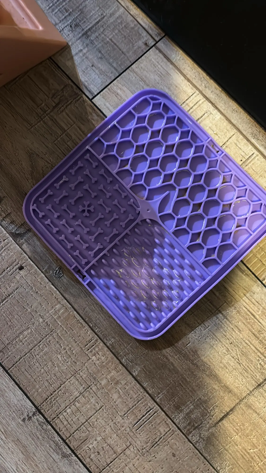 Simply spread some peanut butter, yoghurt or wet food on the mat, stick it to the wall or floor, and watch your anxious pet go from stressed to totally zen — while you clip, brush, bathe or trim in peace.